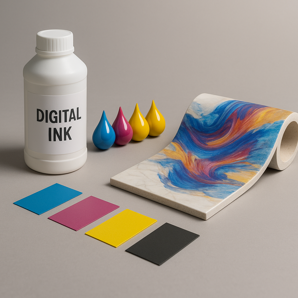 Tile production digital inks are typically made from pigments, resins, and solvents that are specifically engineered for adhesion to ceramic surfaces. They may be water-based or solvent-based, depending on the application and desired properties.